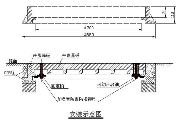 井蓋尺寸及安裝示意圖:(JT-?700×70, DMC復合材料井蓋)